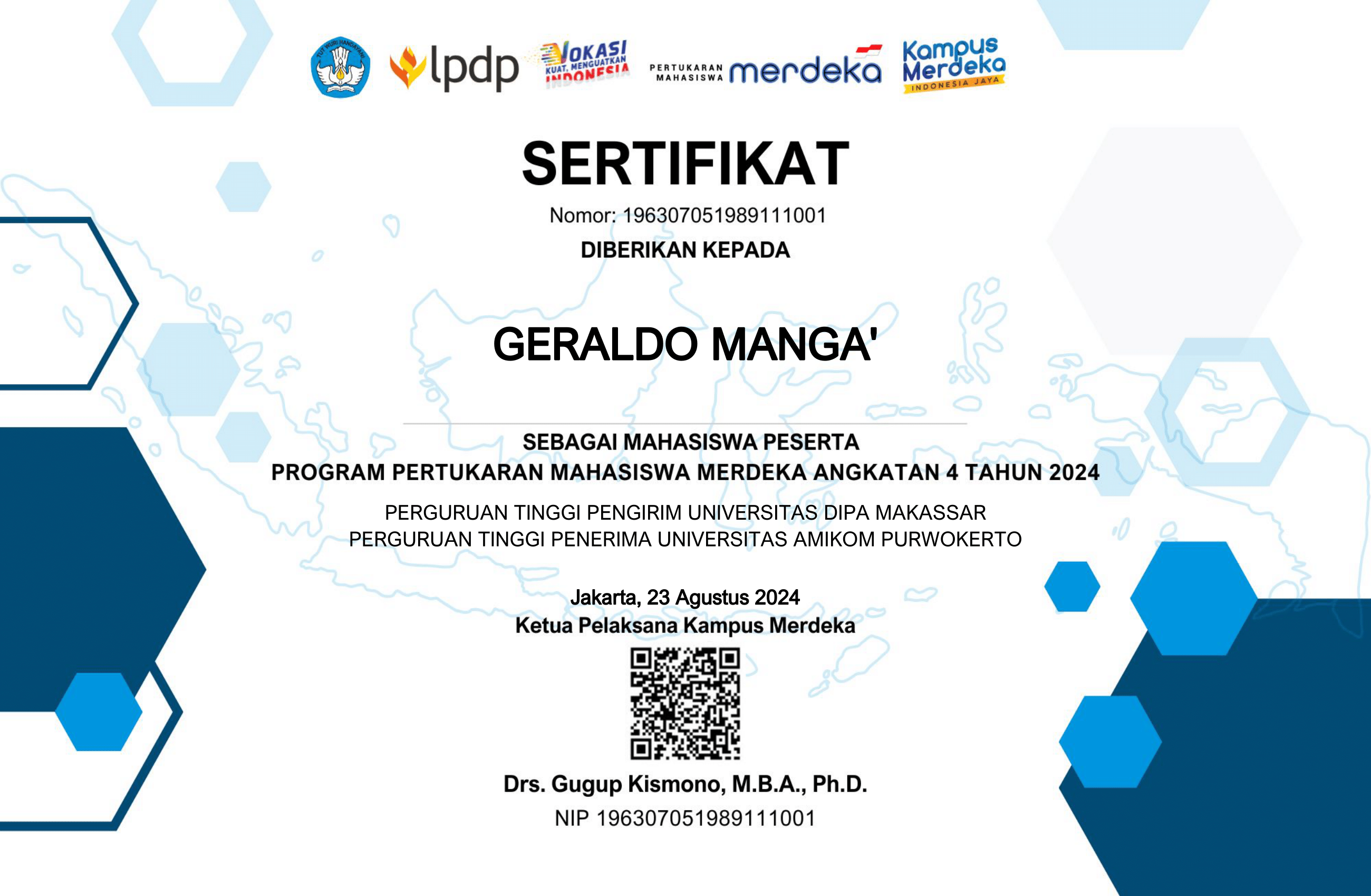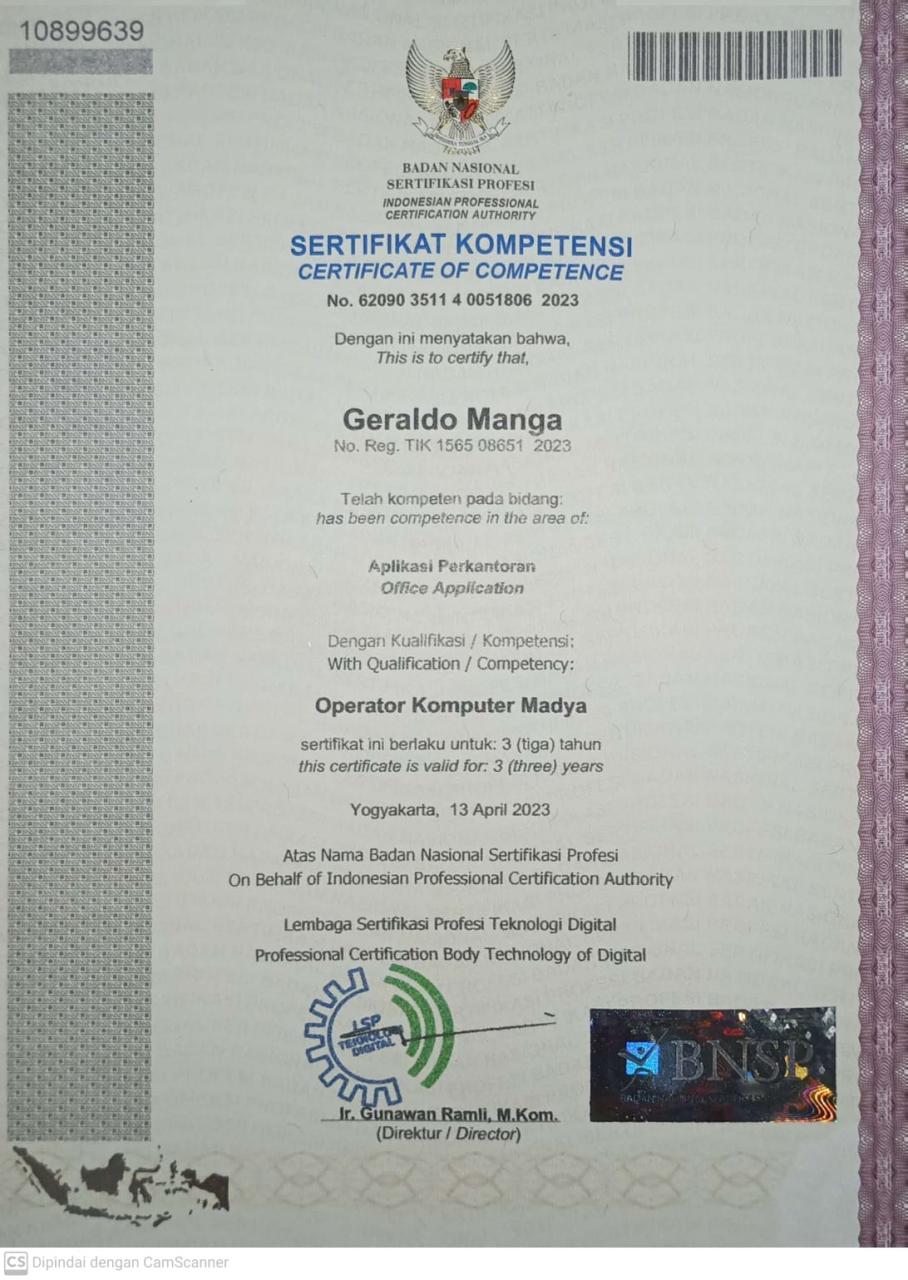 I am a final-year Information Systems student with a focus on front-end web development and UI/UX design. I have experience in designing and implementing websites using Figma, HTML, CSS, Javascript, and Bootstrap 5 for front-end design, and PHP for back-end development. Proficient in using Microsoft Office for creating effective reports and presentations, I have obtained BNSP certification as a Computer Operator Madya. Additionally, I am skilled in SQL programming for database management. With a passion for learning new things, I possess good communication skills and the ability to manage projects and collaborate within teams.